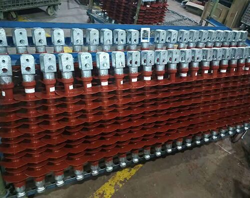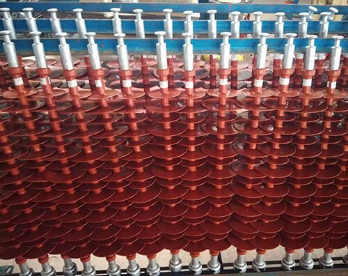 硅橡胶绝缘子一般指主要由伞盘(伞裙或 护套)、芯棒及金属端头三部分组成的复合绝缘子, 其中伞盘由热硫化硅橡胶制造,芯棒采用环氧树脂,经特殊工艺制成。同传统的陶瓷或玻璃串比较,具 有许多优点,主要表现在:质量轻、强度高。由于其主要构成材料是容重 比陶瓷和玻璃低得多的硅橡胶和环氧树脂,而且只 有两端的金属联接附件,整体重量只及陶瓷和玻璃绝缘子串的1/10-1/7,而其拉伸强度却高出3-4倍。